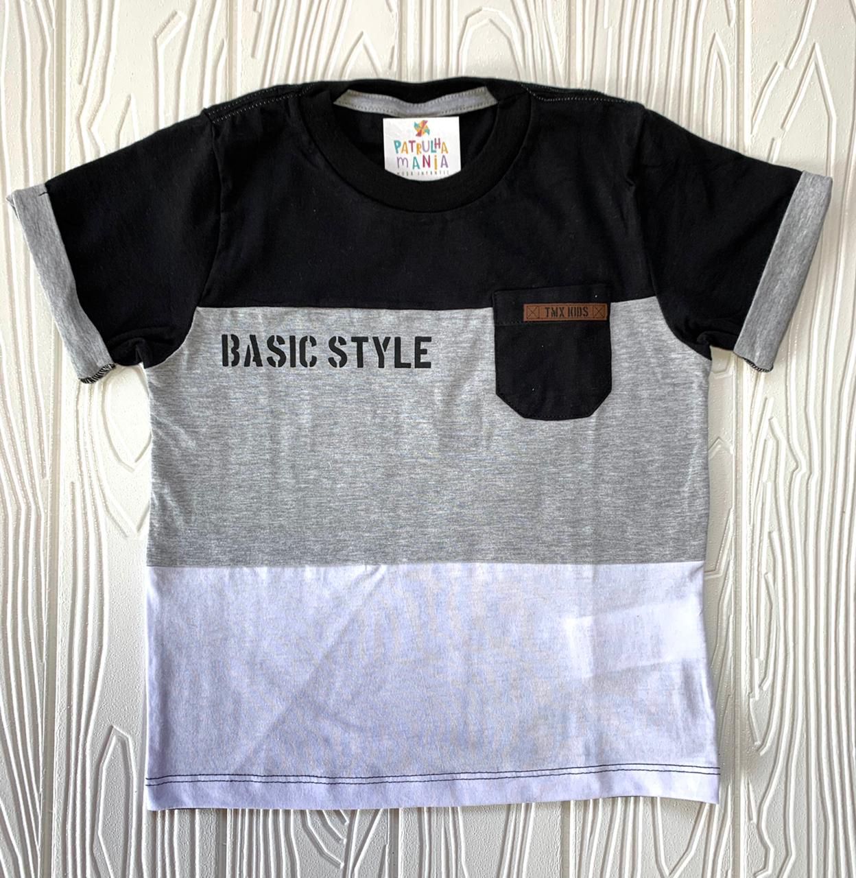 Camiseta meia malha com estampa silk frontal, bolso e recorte com degradê de cor.